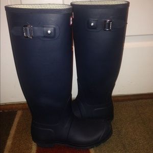 āSOLDā Navy blue matte hunter boots