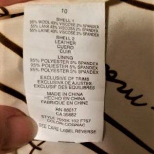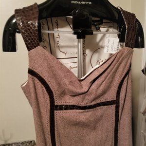 Pinup girl dress , rich mocha bodycon wool with leather, new with tag dress. Please refer to the picture for measurements because I believe it is run smaller than size 10. Armpit to Armpit 18 inch, waist line 15 inch . from top 39 inch long .Best quality in Bebe , lined tweed wool blend with brown crocodile embossed leather details. New , never worn ,no defects, tag is attached. Tons of details. very beautiful on . please no modeling if I could fit in it I would keep it ,for sure.
