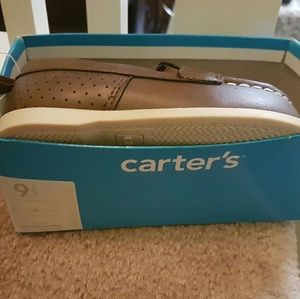 New with box Carter's toddler shoes, color light brown, size 9, easy on closure, flexible sole, ready to wear.
