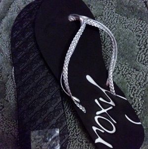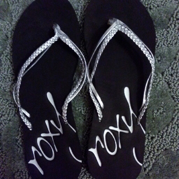 Black and silver Roxy flip flops with braided straps Never been worn!