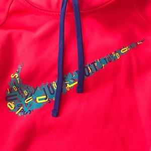 Pinkish red Nike Therma-Fit hoodie with swoosh on front. Only worn once - inside is still super soft and warm. Runs a little big but the bottom is adjustable and can be tightened.
