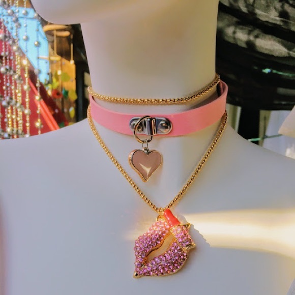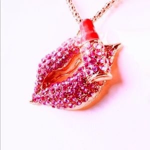 Pink Rhinestone Covered Lips Gives this Unique Pendant Necklace an Extra Serving of Pink Sparkle Fun.