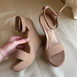 Nude wedges only worn once indoors for a few hours.