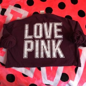 Cute Burgundy campus tee from victoria's secret PINK! like new. washed once. didn't like it how i expected. has a little pocket on the front and cute white bold lettering on the back. NO TRADES. FINAL PRICE.