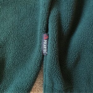 Vintage Polo Ralph Lauren green fleece zippered jacket with buttoned collar and pockets. Elastic waistband and sleeves. Like new gently worn. Size XL. Polartec.