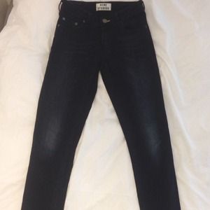 Gently worn 25/32 designer Acne Studios denim! This item is classified under their "Flex" line of jeans as "Flex Basement". It is a mid rise, slim fit, slim leg, narrow hem, 5 pocket, zip fly item.