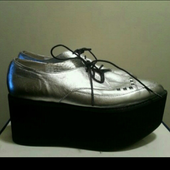 ๐ SOLD ON EBAY ๐ Like new authentic Jeffrey Campbell platform creepers. worn maybe twice, as seen in the pictures, because they're too big for me. the white on the bottom is just residue from the price tag. purchased at Urban Outfitters a couple years ago!