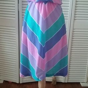 This is a 1970's Vintage Chevron Sun dress in the most fun colors. spaghetti straps and elastic waist. Definitely one of my favorites. <3