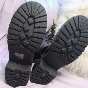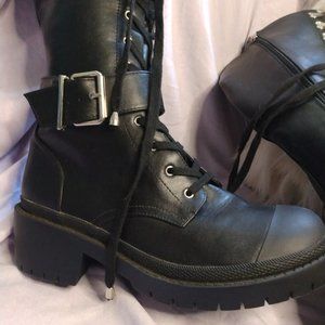 Full length zipper on inside of both boots. Functional buckle and zippers, on functional pockets. Metal grommets on tips of laces.