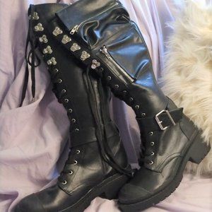 CAPE ROBBIN KNEE HIGH DUAL POCKET FAUX LEATHER BIKER MOTO COMBAT GOTH BOOT