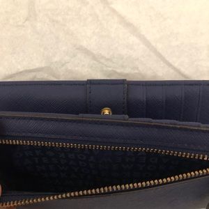 Previously loved Kate Spade navy wallet. Fully functioning Wallet with some minor wear (front plate, and inside - see images) if you have any questions message me!