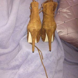 Aldo women's size 39/8.5 suede heeled bootie with extra long strings
