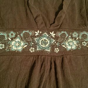 Cute brown babydoll tee. Has beautiful teal flower pattern with gold glitter. So comfy!