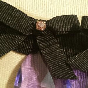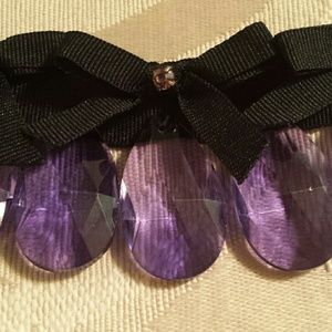 Beautiful black chocker with 5 large dark purple glass pendants. Has black bows as well with light purple diamonds in the middle of the bow.