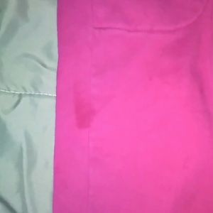 Has some dark color spots and a stain on left pants leg other than that in great condition.