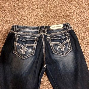 Ladies Rock Revival size 33 capris. Look at pictures. These were easy boot & I had them made into capris. I really like the distressed look of them.. super comfy & stretchy.....