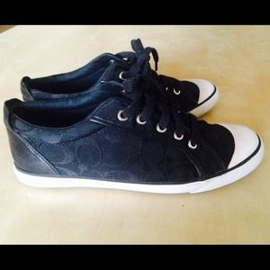 Authentic black Coach signature tennis shoes. A little wear on the back of the shoe, but other then that in great condition.