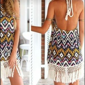 Lots of colors in this on trend print. The rope tie is such a great detail. The fringe is nice and long. Great dress for your summer getaway. This dress runs very small. Please do not buy this listing, we will create a custom listing for you.