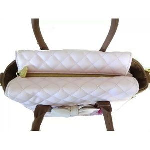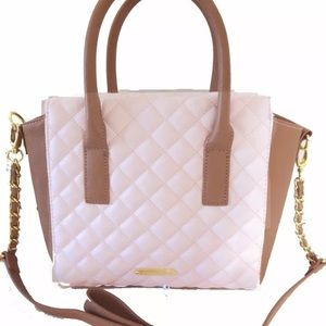 Brand new with tags. No T r @ d e. Color blush. L12"x H 8" x D 4". Handles drop around 5". Long strap 22".