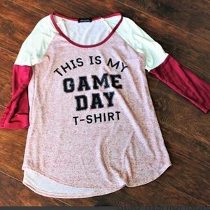 This is the perfect tee for any sports occasion! Very soft and comfy, but also fashionable. Toss it on with your favorite jeans or leggings and your ready to cheer in style!