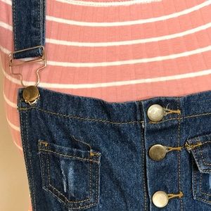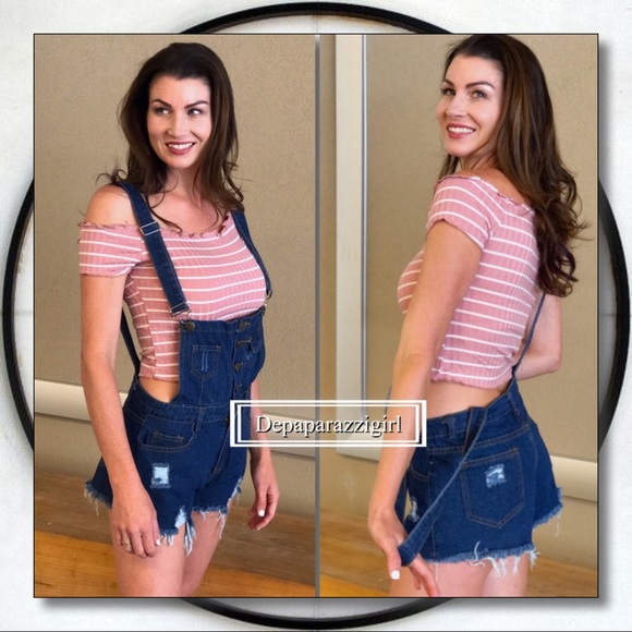 Sexy Distressed Dark Denim Overalls Featuring 6 Pockets, Belt Loops, Button up Closure & Adjustable Straps. I would recommend going one size up from your go to size for more comfort.