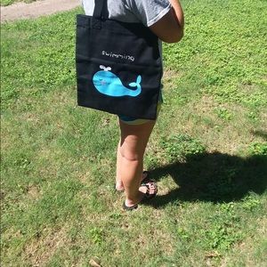 Look how cute these whale bags are. Perfect for anyone who loves whales and make great Christmas gifts. Can use as beach bag, or any thing you what. Yellow bag is just a picture to show you what the inside looks like. Has a zipper and has a small pocket inside you can also zip up.