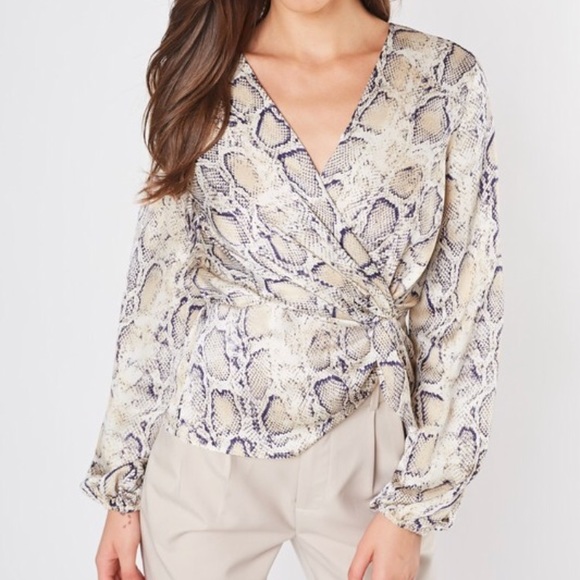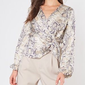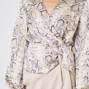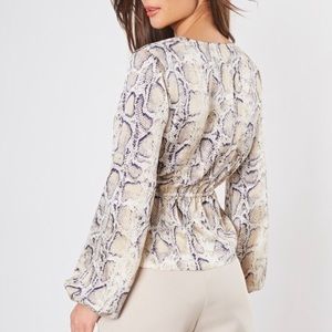 Snake print top with knot detail, elastic band at back and elastic cuffs puff sleeves