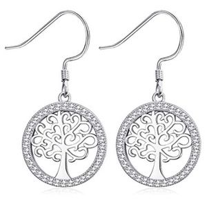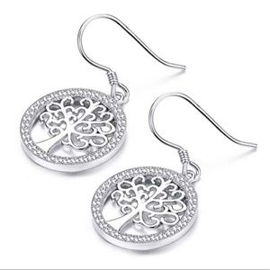 NWT Sterling Silver CZ Tree Of Life Earrings. Sterling silver cubic zirconia tree of life drop earrings hypoallergenic. Sterling 925 Silver XOW7905