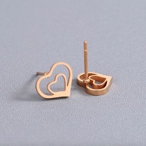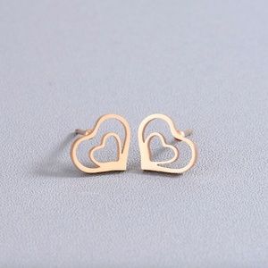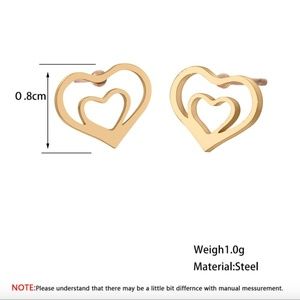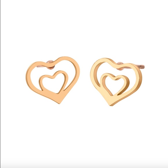 Brand NWT in original packaging. Trendy dainty gold double heart stud earrings. Adorable studs of love! Handmade, high quality stainless steel. Hypoallergenic, nickel & lead free. Push-backs. All sales are final, please ask all Q's prior to purchasing!