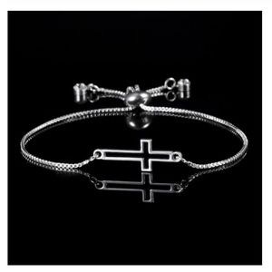 Brand NWT in original packaging. Trendy dainty minimalist fashion closet staple. Sterling silver religious cross pendant toggle bracelet. Jesus Catholic Christian religion horizontal hollow 925 cross pendant on a link chain. Slider lace-up toggle clasp for adjustable length. Delicate, versatile statement jewel; Wear day or night! Handmade, high quality stainless steel. Hypoallergenic, nickel & lead free. All sales are final, please ask all Q's prior to purchasing!