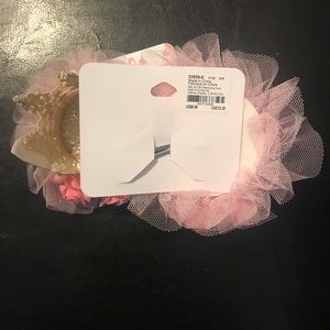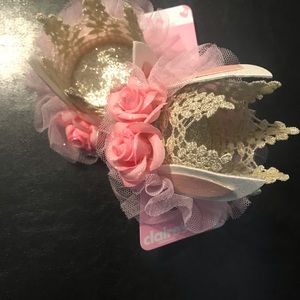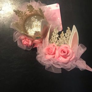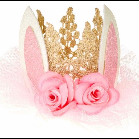 NWT These clips have a gold crown with a pink tulle base and 2 glittery pink roses between the bunny ears.
