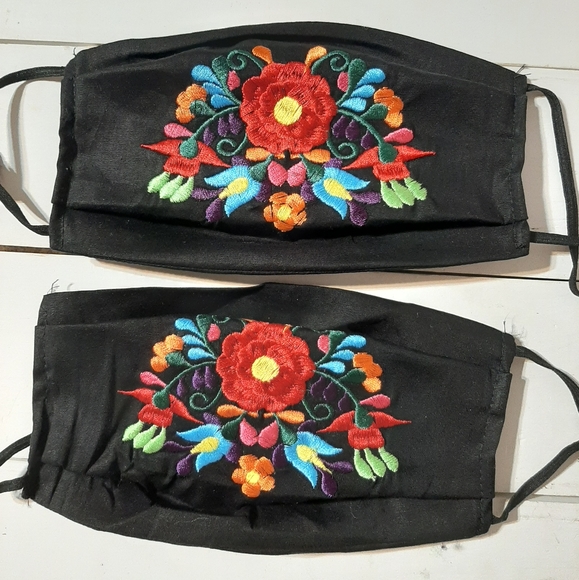 Embroidered face mask, flowers.