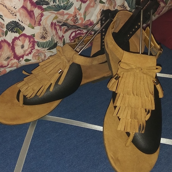 Brand new. No box. No tags. From Goodwill. H&M brand sandals. Nice to pair with something casual. Gold side buckles for easy and comfortable adjustment. Comes from smoke free home.