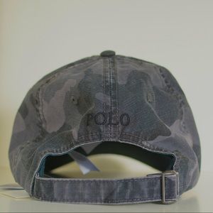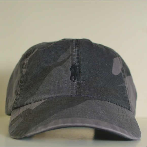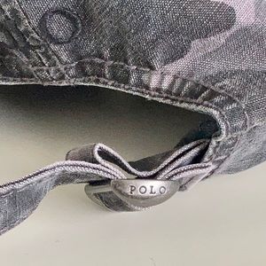 Polo Lightweight cotton canvas baseball cap by Ralph Lauren. Gray camouflage with black embroidered pony. One size.