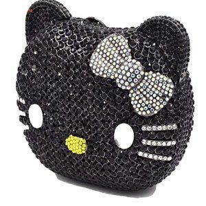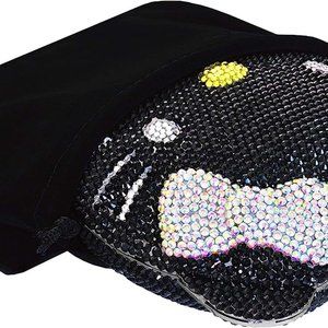 Each bag is 100% Handmade with crystals set by hand. Kitty face on both sides of bag. Item ships in a black velvet pouch and plain white box.