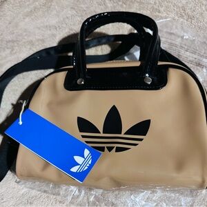 Chic Adidas shoulder bag in beige and black. Features signature logo detail.