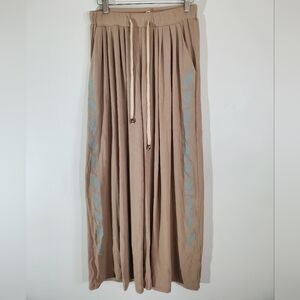 Measurement: 14 inches across the waist before stretching. Plenty of stretch with the elastic drawstring.