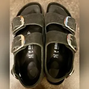 Birkenstock Milano Big Buckle • Birkenstock 1024953 • Size 42 Birkenstock • Birkenstock Narrow Fit • Birkenstock Black Leather Sandals • Unisex Birkenstock • Birkenstock Made in Germany • Birkenstock Milano Black • Luxury Birkenstock Sandals