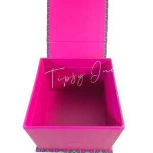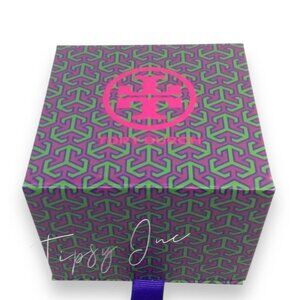 This stylish designer box by Tory Burch offers a chic and functional solution for gifting or storage. The magnetic closure adds convenience, while the vibrant colors and iconic logo make it visually striking. Ideal for elevating any gift presentation or organizing small items with flair.