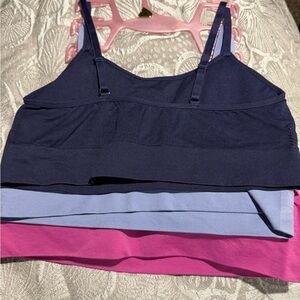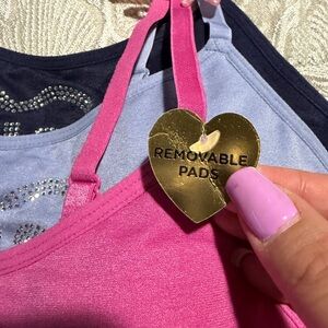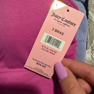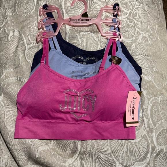 Stylish bralette set in pink and blue. Features Juicy Couture logo. Ideal for casual wear.