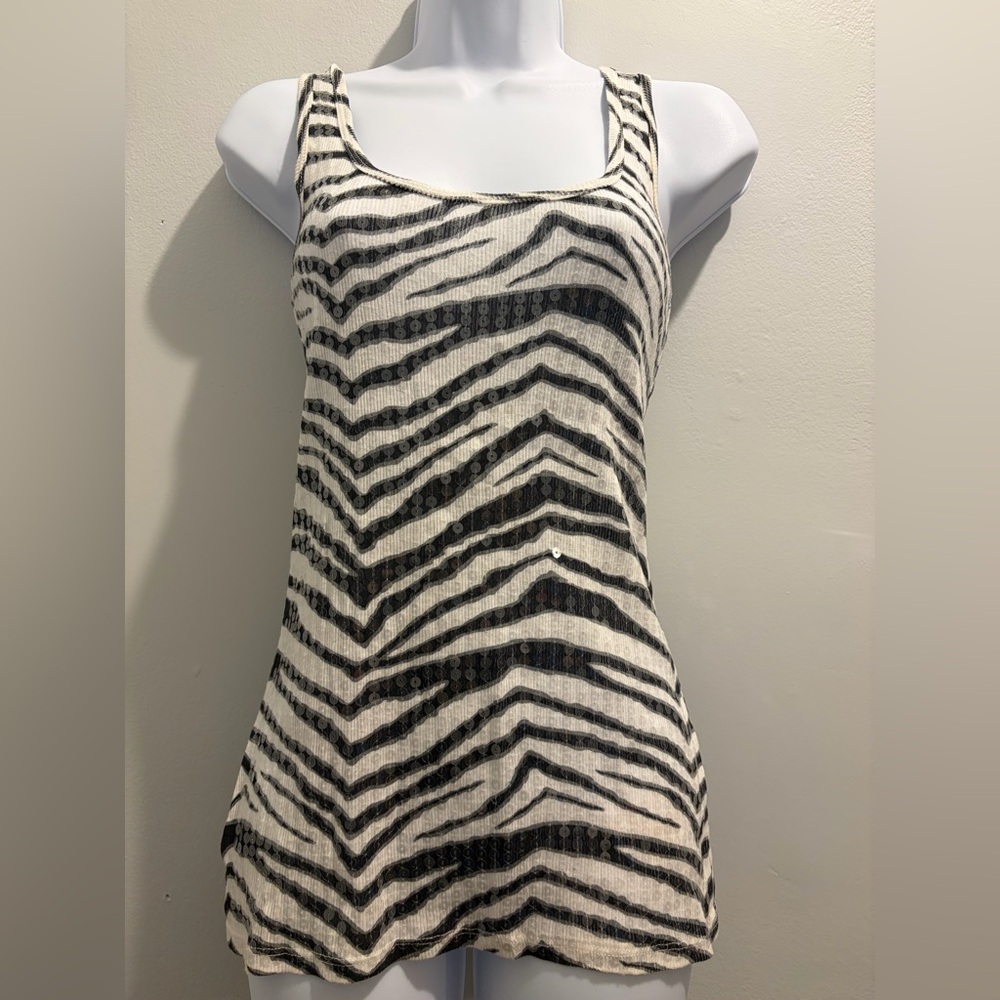 Chic zebra pattern tank top. Perfect for casual wear. Soft and comfortable fabric.