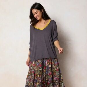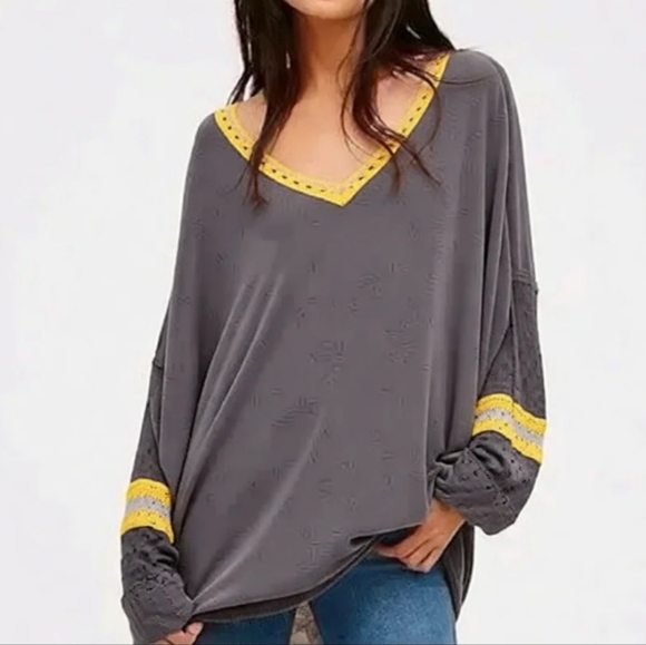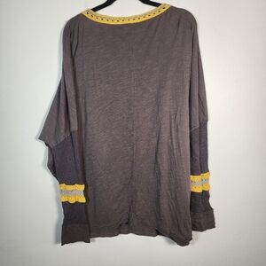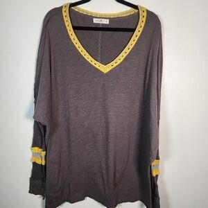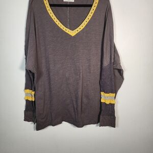 NATURAL LIFE long sleeve tee. Yellow lace accents make it unique and bohemiam.