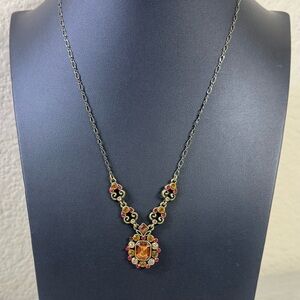 Vintage Avon Topaz Red Rhinestone Lariat Drop Necklace w/ Bronze Color Chain