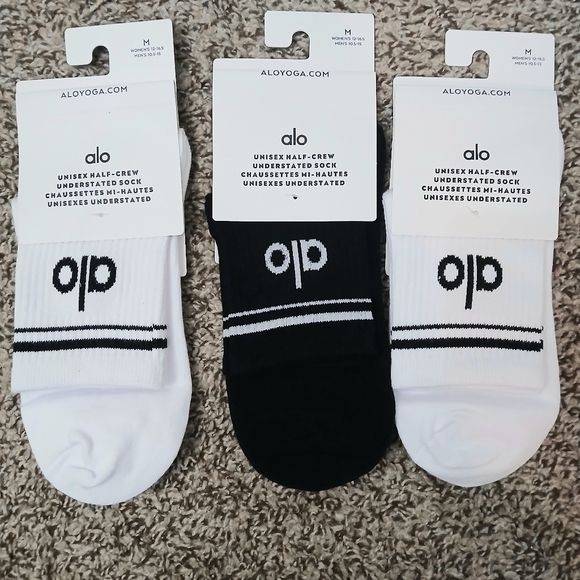 Stylish and comfortable half-crew socks by ALO Yoga. Light weight and breathable materials. Perfect for athletic wear.