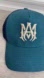 Completely sold out AMIRI MA logo teal trucker hat with blue mesh back