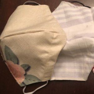 I normally sell pillows and make costumes. Both businesses are on hiatus, so I'm making masks instead. These are imperfect as I was practicing and figuring out my design. The top layer of these are decorative, made from pillow covers. Thick, linen-look poly or cotton