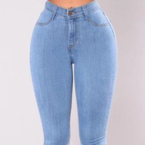 Never worn and sold out online, fashion nova ultra stretch skinny jeans. Distressed around ankle makes your toosh look amazing!