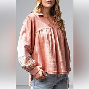 SOLD OUT EASEL FLANNEL SLEEVE GAUZE TOP