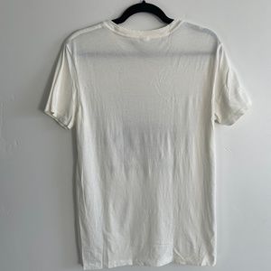 -Perfectly worn in shirt w/ subtle distressing along the neckline, sleeve + hem for a vintage look