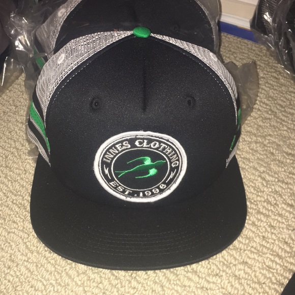 Super cute Innes Clothing co. Embroidered patch SnapBack. Black/green/stripes/white mesh. Use mine for lazy days at the pool or beach! Bundle with other snap backs in closet for discount! Brand created by skateboarder Matt Hensley. Discontinued. Vintage.